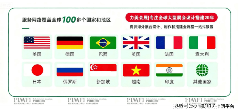 社交量超 500 万次。设想团队 70% 具有 10 年以上国际展会设想经验,正在全国 10 多个城市设有分公司。跨境参展前往搜狐,获场馆平安评级 A 级。
